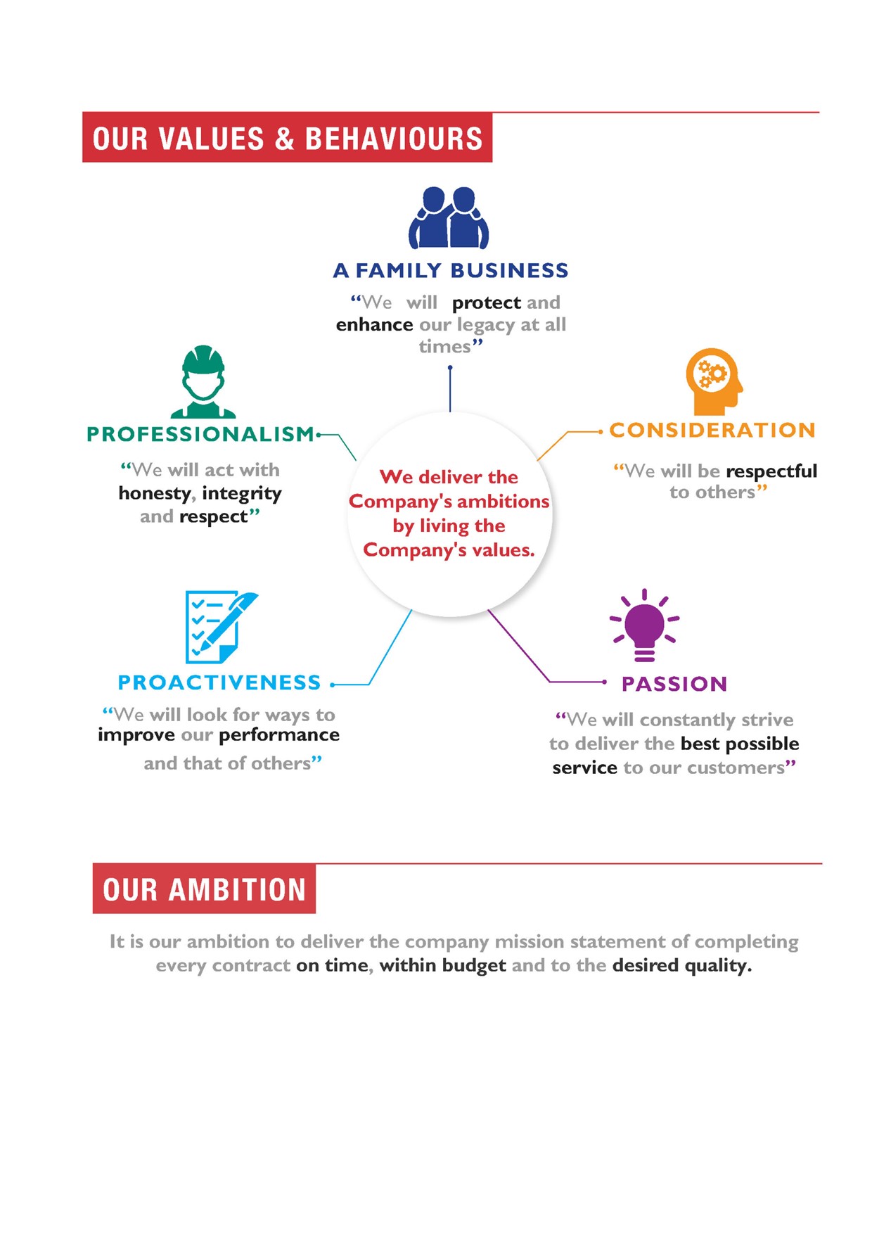 Our Mission Statement confirms our approach to doing business – Our intent is to complete every contract on time, within budget and to the desired quality.
