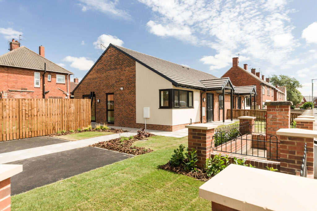 A Design & Build Contract won under competitive tender for the construction of four semi-detached bungalows on a split site.
