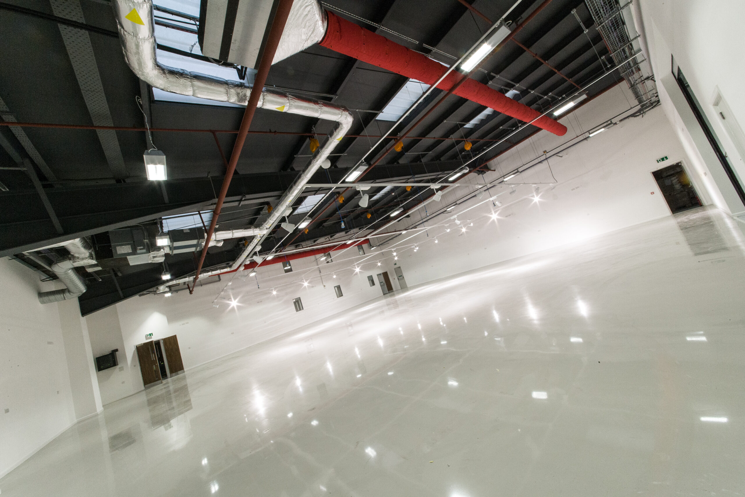 To exploit the artificial lighting and enhance the overall appearance and the floor to the exhibition area was finished with an attractive, hardwearing resin screed.
