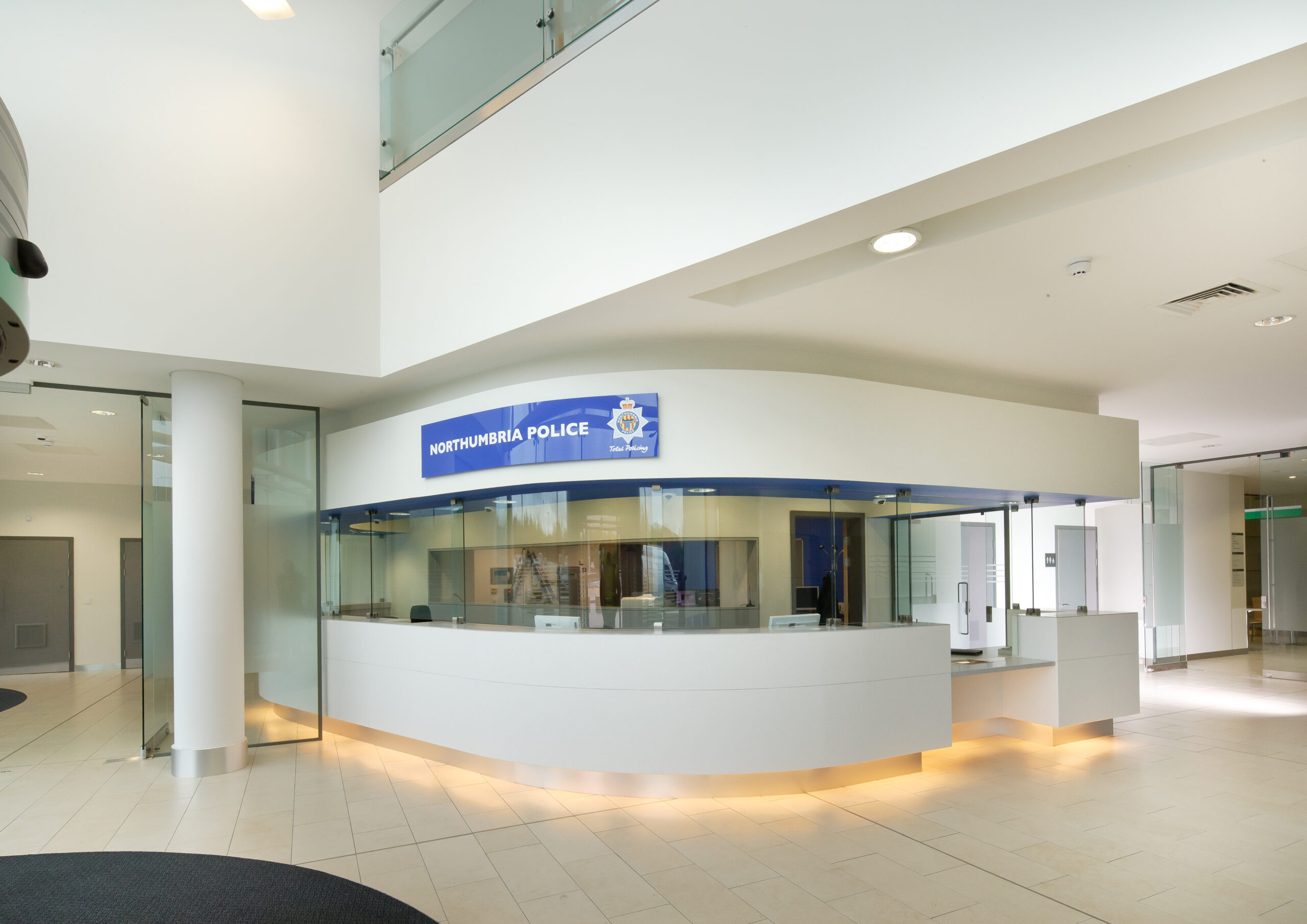 The Charge Desk was semi circular in profile and some 25m girth. We also produced a Reception Desk with curved anti-ballistic glass.